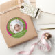 Pegatina Redonda Navidades modernos con marco de foto de flor PINK