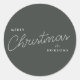 Pegatinas vacacionales de moda con escritura moderna y manuscrita en blanco en un color gris verde y ahumado. El nombre se puede personalizar fácilmente para un toque personal. Un diseño de navidades sencillo, minimalista y contemporáneo que destaca en esta temporada de vacaciones.