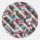Pegatina Redonda Navidades Nutcracker Plaid Blue Burgundy
