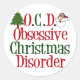 OCD. Trastorno obsesivo de los Navidades. Una graciosa pegatina navideña con un lindo árbol de navidad y Santa Claus para decorar las palabras.