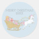 Pegatina Redonda Navidades pasteles unicornio azul de bebé en Sleig