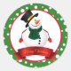 Este pegatina redondo se muestra en una tira de muñecos de nieve adorable Navidad festivo. Personalizar este artículo o compra tal cual.