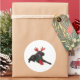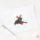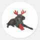 Pegatina Redonda Navidades Perro de juguete negro vestido de reno