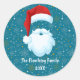 Esta pegatina festiva de la audaz Santa Christmas cuenta con un divertido diseño de Santa Claus, con una gran barba blanca ondulada y un gorra rojo clásico con un pom-pom blanco. El fondo es alegre y azul, salpicado de pequeños copos de nieve y estrellas que le dan un toque de encanto invernal. Todo el texto es completamente personalizable. El estilo caprichoso le da vida al alegre espíritu de Santa, perfecto para extender la alegría de las vacaciones.