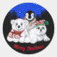 Pegatina Redonda Navidades pingüino bebé oso polar cachorro