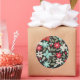 Pegatina Redonda Navidades pintados a mano Poinsettia Red White Aqu
