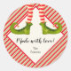 Crea pegatinas para etiquetar a tus Navidades como productos caseros, galletas, dulces, golosinas, favores de fiesta y más con piernas de elfo divertidas con botas verdes, lentes a rayas y campanas de jingle con tu mensaje en letras de moda.