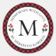 Pegatina Redonda Navidades Regalo de comida Bufalo Rojo Monograma