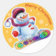 Pegatina Redonda Navidades rodean a pegatinas Snowmen Snow Sports.