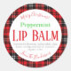 Una vez que tus calambres de labios se han puesto dentro de sus macetas y tubos, puedes agregar estas etiquetas de Navidad para hacer que tu embalaje parezca extra festivo. El diseño presenta un revestimiento rojo y negro bajo un marco de texto blanco.