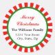 Pegatina navideña brillante y alegre con canoas de menta blanca y roja.Personalizar y personalice el saludo de "¡Feliz Navidad!" y su propia dirección.