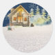 Navidades Rústicos Incluso Registran La Cabina Árboles Verdes De Bosques De Nieve Pegatina Redondo Clásico.
