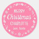 Pegatina Redonda Navidades Santa Nombre personalizado Rosa