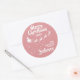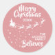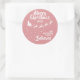 Muéstrate lo mucho que crees en la magia de los Navidades y de Santa Claus con este elegante pegatina redondo de la familia de Navidades rosas que presenta la silueta del trineo de Santa con sus renos, volando en un sendero de estrellas. La leyenda de arriba dice Feliz Navidad con letras blancas escritas a mano. El texto es fácilmente personalizable con sus deseos, año y apellido o nombre de negocio. Este pegatina hace que los Navidades perfectos se sellen para los deseos de la familia o pueden ser usados para decorar sus regalos de Navidad