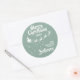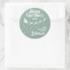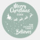 Muestre lo mucho que cree en la magia de los Navidades y de Santa Claus con este pegatina redondo de la familia de Navidades que presenta la silueta del trineo de Santa con sus renos, volando en un rastro de estrellas. La leyenda de arriba dice Feliz Navidad con letras blancas escritas a mano. El texto es fácilmente personalizable con sus deseos, año y apellido o nombre de negocio. Este pegatina hace que los Navidades perfectos se sellen para los deseos de la familia o pueden ser usados para decorar sus regalos de Navidad