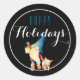 Pegatina Redonda Navidades se reúnen con linternas y cerdo feliz fe