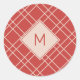 Pegatina Redonda Navidades simples cheques de monograma rojo y crem