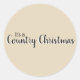 Sencillos Navidades De País Beige Redondo Pegatina. Fondo beige. En negro con sombras blancas están las palabras "Es un país Navidades" en dos tipos de tipografía.