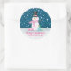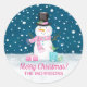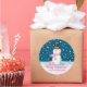 Pegatina Redonda Navidades Snowman Rosa Cute Personalizada