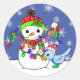 Pegatina Redonda Navidades Snowman y el pájaro azul de nieve