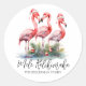Flamingo rosa tropical Mele Kalikimaka Pegatina redondeado clásico. Celebre las vacaciones con un toque tropical usando este pegatina redondo festivo con tres flamencos rosas con sombreros de Santa, acentuados con adornos en la base. Ideal para esparcir alegría por las vacaciones en la playa, este pegatina es perfecto para aquellos que se encuentran en lugares tropicales como Florida, Hawaii o Bahamas, o para cualquiera que ame la vida en la playa. La frase "Mele Kalikimaka" está escrita en un guión elegante en la parte superior, agregando un toque hawaiano juguetón al diseño. El estilo rústico de acuarela y la mezcla de fuentes simples y guiadas le dan un aspecto divertido, informal y elegante. Úsalo para añadir un toque tropical a tus Navidades sobres de tarjetas, favores de fiesta o cualquier decoración de vacaciones.