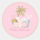 Navidades tropicales Palm Tree y Presenta Pegatina redondo clásico sobre sobre. Este pegatina cuenta con una tarjeta de Navidades tropicales con VW Bug y una palmera decorada con conchas y sobre a juego. Aquí en Florida nos encanta entregarla a nuestros amigos y familia del norte sobre nuestros inviernos suaves. Encuentra esto y piezas a juego más tarjetas de Navidades tropicales en mi tienda: "Chica de Florida". Puede que quieras guardarme o seguirme para encontrar para tus eventos de verano. ¡Tengo muchos!