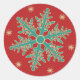 Pegatina Redonda Navidades turquesa de oro rojo con copo de nieve