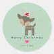 Pegatina Redonda Navidades Venados En Un Sombrero De Papá Noel Rojo
