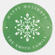 Los pegatinas de regalo de Navidades personalizados cuentan con hojas de copo de nieve blancas decorativas sobre fondo de acuarela de color verde invernal, moderno y moderno.