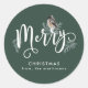 Pegatina de vacaciones Rústico y Blanco Merry Script con un acogedor pájaro de invierno y su nombre familiar. Comprar esta tienda para coordinar invitaciones a Navidades y accesorios de correo!