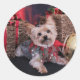 Pegatina Redonda Navidades - Yorkshire Terrier - Vinnie