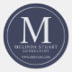 Pegatina Redonda Navy Blue and Silver Elegant Monograma Business