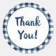 Crea tu propio diseño de gingham cambiando el fondo azul marino oscuro a tu color favorito. También puede cambiar el tamaño de la imagen y la orientación del patrón de gingham sin fisuras. Coincida el color del diseño de texto "gracias" con el color de fondo si lo desea. Blue gingham gracias pegatinas de boda.