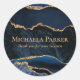 Pegatina Redonda Navy Blue Gold Agate Marble Business Gracias