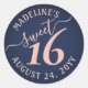 Pegatina Redonda Navy Blue Rubor dulce rosa 16 cumpleaños a favor d