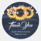 Pegatina Redonda Navy Blue Rustic Sunflower Wedding Thank You