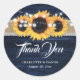 Pegatina Redonda Navy Blue Wood Burlap Lace Sunflower Wedding