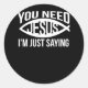 Pegatina Redonda Necesitas A Jesús, Solo Digo Necesidad A Jesús.