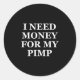 Pegatina Redonda Necesito Dinero Para Mi Pimp, Divertido, Chistes,