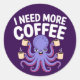 Pegatina Redonda Necesito más café Gracioso Octopus Coffee Lover