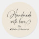 Pegatina Redonda Clásica Ecru Negocio Pequeño Guión Hecho a Mano Con Amor