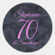 Pink Black 70 y Sensational Birthday Favor Classic Round Pegatina Especial y elegante fiesta de cumpleaños Pink Black favorece a los pegatinas especialmente diseñados para tus amigos que cumplen 70 años y son sensacionales. Personalice esta fiesta de cumpleaños para favorecer al pegatina con su nombre. Aplique este pegatina a los favores de cumpleaños, sobres para invitaciones, notas de agradecimiento o cualquier cosa que esté creando para agregar sus toques de acabado especiales para el fiesta. ¡Planifique a su fiesta con más suministros de nuestra tienda para fiestas de cumpleaños! ¡A tus amigos o a tu familia les encantará una elegante fiesta de cumpleaños con temática rosada negra!