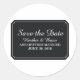 Boda moderna y moda Sencillamente Elegante Salve a los Pegatinas con un diseño elegante de emblema negro de boleto. Este diseño clásico y elegante es fácil de personalizar con sus detalles bodas. Para obtener más opciones de personalización, haga clic en Personalizar.