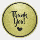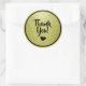 Esta es una etiqueta de agradecimiento de brillo falso con clase en la popular combinación de colores dorado y negro con un icono de corazón. El texto es una plantilla para que puedas cambiarla según tus necesidades. Es ideal como sello de sobre o etiqueta de regalo para bodas, fiestas de cumpleaños, aniversarios, graduaciones y más. #negroydorado #fauxbrillo #brillante #brillo #clase #gracias #elegante #fino