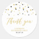 Este moderno personalizado gracias pegatina añadirá un detalle elegante a su día especial. Este diseño presenta letras doradas " Gracias " y confeti hexagonal en un fondo negro. En mi tienda BaraBomDesign hay disponibles invitaciones y papelerías coincidentes de la fiesta de retiro.