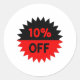 Pegatina Redonda Negro y rojo 10 por ciento desactivado