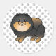 Pegatina Redonda Negro Y Tan Pomeraniano Caricatura Perro y Papas