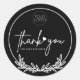 Elegante y moderno negro gracias pegatina con una elegante rama botánica en la parte inferior. Este pegatina de logotipo personalizado es perfecto para pequeñas empresas, marcas hechas a mano, fabricantes de velas, empaquetado de joyas y tiendas. Personalízalo con su nombre comercial o logotipo para crear una experiencia de marca profesional y coherente. Ideal para añadir un toque especial a los pedidos y los paquetes de valoración del cliente.