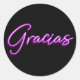 Pegatina Redonda Neón Resplandor Púrpura Español Gracias Gracias
