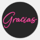 Pegatina Redonda Neón Rosa Brillante Español Gracias Gracias